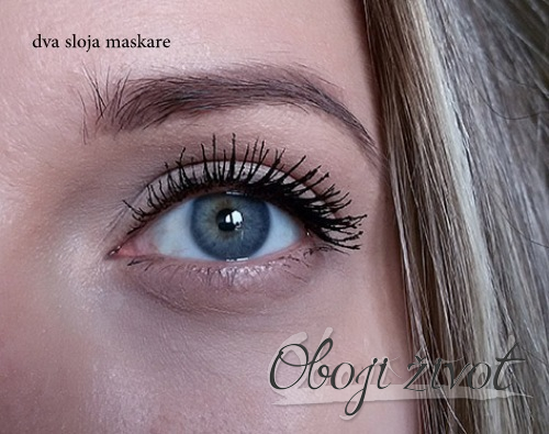 Kako me je oduševila njena otpornost na razmazivanje i preslikavanje, probala sam da je kombinujem sa voljenom I Love Extreme Crazy Volume maskarom i dobila pun pogodak u efektu koji želim da postignem. Jedan sloj Crazy Volume maskare, praćen drugim slojem Volume Waterproof maskare trepavicma daje fantastičanu dužinu, dramatičan volumen, ali i postojanost tokom celog dana, bez preslikavanja. Jedna preko druge “legnu” savršeno, ne krune se i rade timski na postizanju fenomenalnog efekta. Time sam spojila najbolje iz oba sveta i eliminisala njihove pojedinačne nedostatke koji su prisutni u mom slučaju.